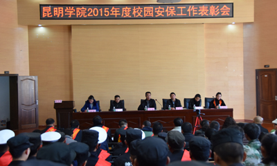 12月23日下午,保卫处在图书馆二楼报告厅召开2015年度校园安保工作表彰会,表彰本部门在2015年度校园安保工作中涌现出的优秀个人。副校长李翔、机关党总支书记周德钦、学生处副处长侯青妮、昆明绅顿保安服务有限公司副总经理和丽虹出席表彰会,保卫干部、保安、学生治安服务队员共100余人参加表彰会。表彰会由保卫处副处长孙丽主持。