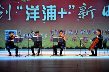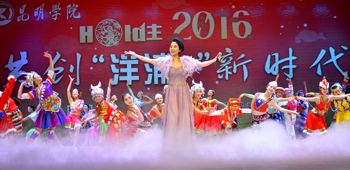 12月25日下午,昆明学院2016新年师生团拜暨文艺汇演在学生会堂隆重举行。全体校领导、中层干部、各院系团总支书记、辅导员及师生代表欢聚一堂,共迎2016美好明天。