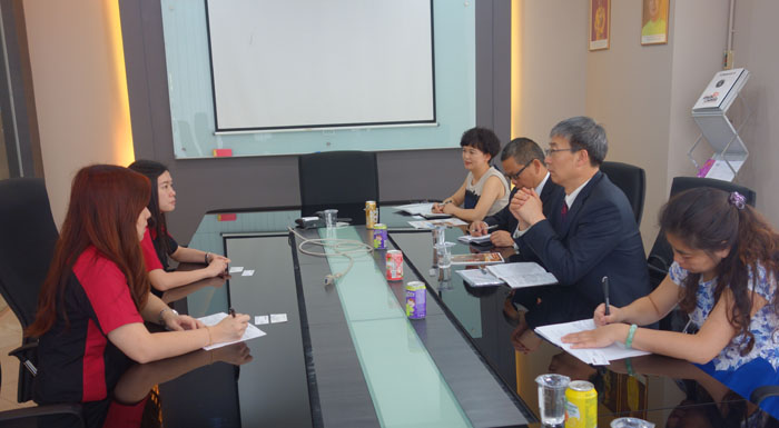 董建华一行在几天的考察交流活动中,与益斯塔学院总经理陈丽诗、销售与市场部李经理等进行了座谈交流。首先,双方肯定了假期学生短期交流所取得的成果,马方学生通过两周的交流学习,了解了昆明学院应用型的办学特色,严谨的治学态度和丰富的校园文化生活;中方学生则领略了世界品牌的汽车构造,感受了不同风格的授课方式。双方学生都体验到了不同的文化,拓宽了双方学生的国际化视野。之后,双方就前期签订的《国际合作办学协议书》中的细节问题进行了深入磋商。该协议拟定利用双方优势资源,昆明学院招收在益斯塔学院完成两年半汽车发动机技术专科课程的马方学生,采取2.5+1.5的模式,开展中马联办专升本项目,合作培养四年制本科机械设计制造及其自动化专业(汽车工程方向)学生,最后由昆明学院授予本科学历证书。此次益斯塔学院将马来西亚高教部批准的专科资质证书正式交给了昆明学院,确保了后期合作的顺利进行。会谈中双方对招生时间、招生规模、中方授课方式、班级组成等细节均达成一致,该项目有望在2016年正式开始招生。会谈中陈丽诗又提出了几种新的合作模式。第一、1+2.5+1联合培养模式,即由昆明学院在中国招生,学制五年半,其中第一年在昆明学院学习语言,可由马方教授来华授课;第二至四年(或四年半)在益斯塔学院就读,主要学习汽车技术专业课程;第五年在英国Teesside University 完成专业提升课程,最后学生可获得益斯塔学院颁发的汽车发动机技术专科文凭及得到英国BTEC认证的Teesside University颁发的本科文凭。该项目可以为中国学生提供丰富的求学经历并开创更多的发展机会。第二、在益斯塔学院开设昆明学院四年制本科机械设计制造及其自动化专业(汽车工程方向)课程,招收马来西亚学生,由两校教师共同授课,毕业后颁发昆明学院本科文凭。第三,在昆明学院机械设计制造及其自动化专业(汽车工程方向)专业培养方案中引入益斯塔学院推荐的汽车发动机技术专业核心课程《混合动力》,并由马方教授来华全英文授课。第四、2015年益斯塔学院新开设了飞机维修类课程,也希望能够引入到昆明学院共享。