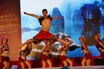 至此,昆明学院艺术代表团赴泰的五场演出圆满结束。代表团克服了舟车劳顿和炎热天气带来的困难,以高度的热情投入到每一场的演出中。开场舞蹈《吉祥孔雀》给泰国观众送去了吉祥的祝福,独具云南少数民族风情的舞蹈《跳烟盒》、《木屐与山鼓》、《小伙四弦马樱花》、《红灯笼》和歌曲《梯田夜话》,广为泰国民众熟知的歌曲《甜蜜蜜》、《月亮代表我的心》、《茉莉花》,深情悠扬的葫芦丝演奏、富于激情的手风琴演奏和青春动感的爵士舞等节目,特别是令人惊叹的视觉错觉艺术水晶球和魔幻圈的表演,都让现场观众享受到一场视觉听觉的盛宴。看到现场不断闪烁的闪光灯、观众的欢呼声,争相高举的拍摄视频的手机,让代表团每一个成员都感受到成功的喜悦,每个人脸上都绽放出汗水浇灌的灿烂花朵,台上台下的热情交汇,台前台后的同行间的交流,让赴泰演出的全程充满了激情,艺术团的每一位成员都展现出中国的风采、昆明学院的风采。台前幕后,无时无处没有团长李翔、副团长靳丽芬和舞台总监常浩导演忙碌的身影。最让人难以忘怀的是,在短暂而忙碌的9天时间里,中国驻泰国大使馆和孔敬总领馆的关心无微不至,当地侨团的热情、周到和细致以及泰国当地政府的重视和支持,每一个细节都是对中泰两国友好的最佳阐释,正如李翔在致辞中提到的:中泰之间的情意是国家之间的情意,是两国人民的情意,是历史悠久绵延不绝的情意。因此,我们有责任祝福这份情意,传承这份情意,维护这份情意。让中泰两国世代友好,并携手发展,为亚洲、乃至世界的和平与发展做出贡献。(责任编辑:刘芳)