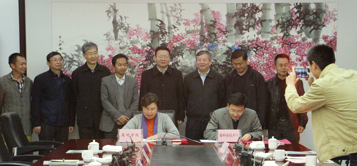 最后,在参会人员的见证下,昆明学院副校长熊晶与省科学技术院副院长胡启代表双方单位签署了合作协议。