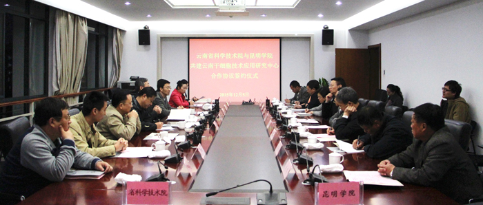 12月5日下午,云南省科学技术院——昆明学院共建云南省干细胞技术应用研究中心合作协议签约仪式在学校办公楼311会议室举行。云南省科技厅厅长、省科学技术院院长龙江,省科学技术院副院长胡启相等一行9人,学校党委书记陈世波、校长何华,副校长熊晶、董建华,校长助理马银海、项目负责人胡敏教授及相关职能部门负责人出席了签字仪式。仪式由校长何华主持。