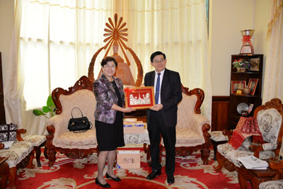 熊晶在介绍昆明学院基本情况,我校培养老挝留学生的院系以及给予老挝留学生的优惠待遇,以及我校开展南亚、东南亚研究,在服饰设计、体育舞蹈、酒店管理等方面人才培养的具体情况之后,对方表示出极大的合作兴致。Phout Simmalavong谈到,在中国驻老挝大使馆的推动下,国立大学将成立中国研究中心,以后该中心将加强与我校滇池泛亚合作战略研究院在南亚、东南亚方面的学术交流及合作。中国研究中心明年计划召开国际会议,届时希望昆明学院能派代表团参会交流研究成果。随着中国和万象之间交通网络不断畅通,旅游业将成为双方可以开展广泛合作的主要领域之一,希望昆明学院能在旅游产品开发,尤其是民族服饰设计、手工艺产品开发设计等方面与国立大学开展合作,如师资培训等等。此外,昆明学院农学院在都市农业方面开展的研究以及形成的技术也值得借鉴,希望进一步加强沟通合作,形成互利互惠的合作机制。之后,国际交流处副处长提出请我校每年提供1-2个全额奖学金名额,国立大学每年派送10——20位留学生到我校学习,形成稳定合作关系的建议。