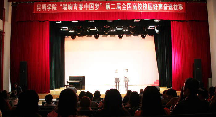 根据云南省委高校工委转发的教育部思想政治工作司易班网“唱响青春中国梦”第二届全国高校校园好声音大赛的通知要求和校领导批示,昆明学院赛区于 11月16日起对全校各院系师生开展广泛的宣传动员,截止23日共有有14个院系的78首歌曲作品报名参赛,涉及120余人次,选手们认真准备、表现突出。