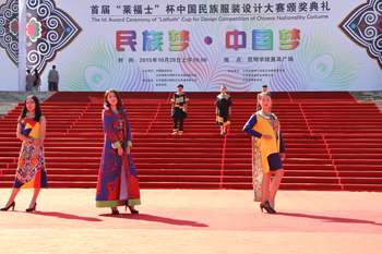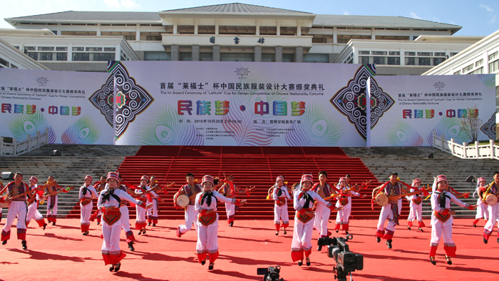 10月28日上午,2015首届“莱福士”杯中国民族服装设计大赛颁奖典礼暨展演活动在昆明学院聂耳广场隆重举行。