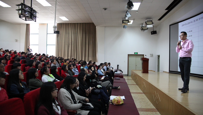 郭华代表学校欢迎希尔顿集团8家酒店的到来,感谢希尔顿酒店集团对昆明学院旅游学院酒店管理专业的支持。郭华说,昆明学院是2004年5月整合昆明市优质教育资源组建而成的全日制普通高等学校,校园总占地面积2366亩,其中,主校区1817亩,校外实习基地549亩。是目前云南省学科门类最齐全的本科院校,现有47个本科专业,14个特色专科专业,面向全国20多个省(自治区、直辖市)招生,现有全日制本专科学生18000多人,有在职教职工1680多人。昆明学院正秉承“明德至善,知行利物”的校训,按照信念执著、品德优良、知识丰富、本领过硬的要求,以“思想品德优,理论基础实,专业能力强,综合素质高”为基本规格,着力为国家和地方经济社会发展培养“上手快、后劲足、能创新”的高素质应用型人才。昆明学院以服务地方经济社会为己任,立足昆明、研究昆明、服务昆明,增设一批经济社会发展急需的新专业,与相关企业合作开展“订单式”培养人才,利用 “昆明科学发展研究院”、“昆明滇池(湖泊)污染防治合作研究中心”、“滇池泛亚合作战略研究院”、“昆明市物联网及泛在工程技术中心”等研究平台和一批院(系)所结合的研究机构,积极推进校地合作、校企合作、校际合作。昆明学院坚持开放办学,积极开展校际交流合作,探索推进国际化进程。先后与美国、英国、澳大利亚、新西兰、日本、泰国、芬兰、新加坡、马来西亚等20多个国家的大学和南京大学等国内高校开展交流,在若干领域签订了合作协议,并互派交流师生。郭华强调,昆明学院荣获昆明市平安建设先进单位、全国“六五”普法中期先进单位、省级文明学校、云南省文明单位、全国文明单位等多种荣誉称号,目前正按照“超常规、跨越式、追赶型”发展思路,努力把昆明学院建设成全国同类高校领先、办学特色鲜明的综合性应用型大学。郭华指出,昆明学院非常重视和支持旅游学院同希尔顿酒店的合作,除了酒店管理专业之外,双方还可以寻求在诸如人力资源、财务管理和酒店其它领域的合作,实现双方共赢互惠和发展。