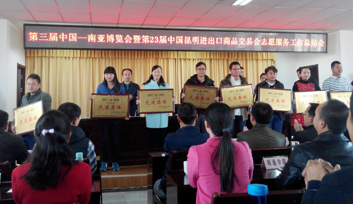 10月11日上午,第3届中国—南亚博览会暨第23届中国昆明进出口商品交易会志愿服务工作总结表彰会在昆明举行,我校喜获第三届中国—南亚博览会志愿服务“先进集体”荣誉称号,韩家华等17名志愿者被授予“优秀志愿者”荣誉称号。昆明学院团委书记魏妮娅出席了本次会议,并代表学校接受了团省委的表彰。