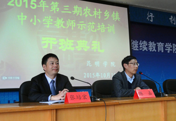 10月19日上午,昆明市2015年第三期农村乡镇中小学教师示范性培训在昆明学院昆师路校区继续教育学院开班。参加该项目第一批次培训学习的208名农村乡镇中学教师分别来自昆明市各县(市、区)及滇中新区安宁市、嵩明县和空港经济区,其中语文教师73名,数学教师73名,英语教师62名。