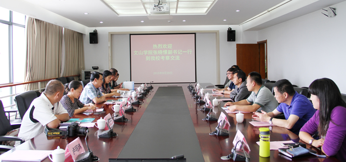 9月29日上午,文山学院党委副书记张晓憬一行7人到我校考察交流。在办公楼411会议室,两校就招生就业、学生、后勤、基建、共青团、劳资等工作进行交流座谈。