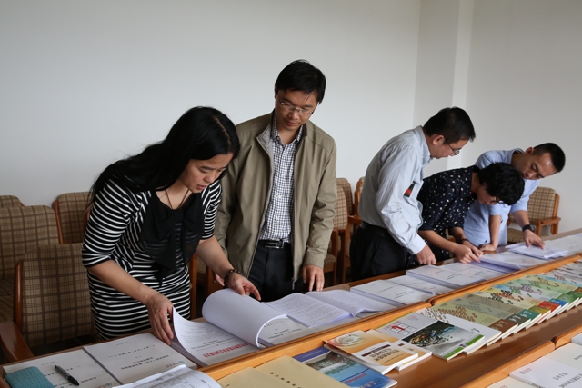 听完学校、抽查单位的汇报后,检查验收组按照“高校‘六五’普法检查验收评分细则”逐项查阅台账,对相关工作环节作了深入询问、核对,并逐一逐项打分。