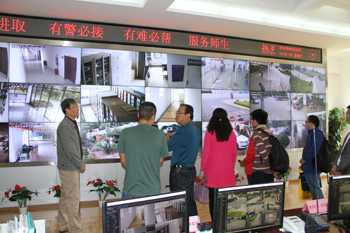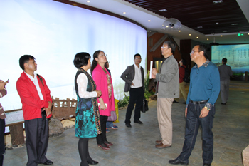 我校副校长董建华陪同滇西应用技术大学(筹)筹建组副组长、云南省教育厅发展规划处处长杨丽宏一行,参观了昆明学院沙盘,保卫处校园安防中心的监控中心、消防指挥中心、110报警中心,场馆中心的网球馆、排球馆、篮球馆、形体训练馆、游泳馆,图书馆,聂耳广场,自机学院的轨道交通实验室、虚拟制造技术实验室,滇池流域生态文化博物馆,医学院的人体生命科学馆、ICU实验室、手术室、婴儿游泳室,农学院的阳光中庭、旅游学院的酒水实验室、校园环境建设及学校食堂。