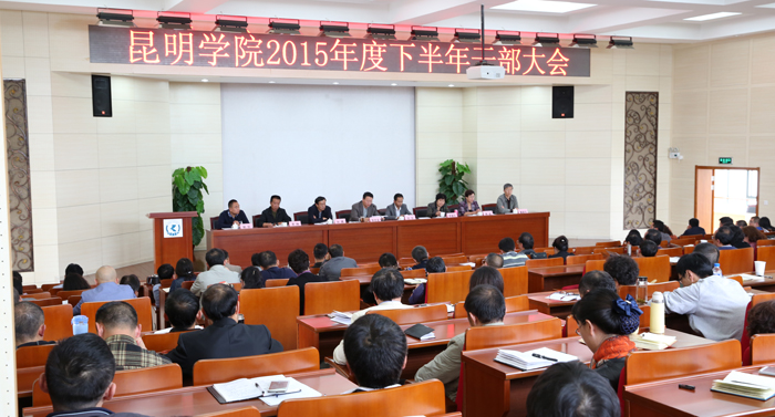 何华在安排布置2015年下半年工作时,紧扣“质量提升促内涵 创新改革促发展”主题,首先回顾总结了上半年工作。他说,今年上半年,按照党委、行政的统一部署,学校各单位开拓创新、积极进取、努力工作,各项工作顺利推进。一是加强思想政治理论学习,扎实推进“三严三实”和“忠诚干净担当”专题教育;二是《昆明学院章程》正式通过核准;三是认真贯彻执行中央关于坚持和完善普通高等学校党委领导下的校长负责制的“实施意见”和省委的“实施办法”;四是成立学校“十三五”规划编制工作领导小组,启动“十三五”规划前期相关工作;五是积极开展创新创业教育改革,深化教学改革,提高应用型人才培养质量;六是加强学科建设,提高科研质量和服务社会能力;七是深化人事制度改革,加强师资队伍建设;八是以学风建设为核心,加强学生管理,认真做好招生和毕业生就业创业指导服务工作;九是提高国际交流水平,加强留学生教育和管理工作;十是落实党风廉政建设主体责任及其他各项工作。