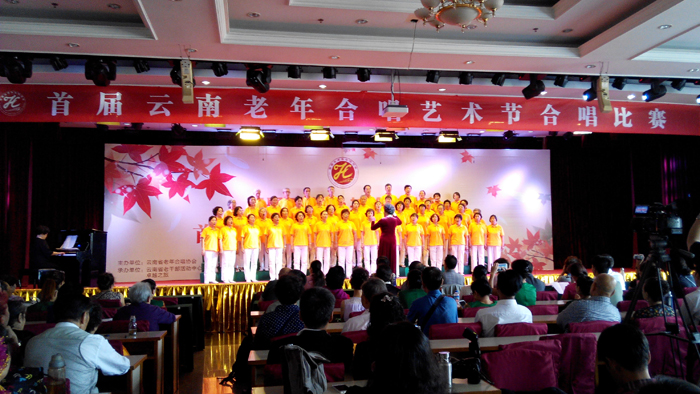 为纪念中国人民抗日战争暨世界反法西斯战争胜利70周年,云南省老年合唱协会举办了老年合唱艺术节合唱比赛活动。本次比赛共有3100多人近六十个代表队参加,是我省近年来举办规模最大的一次老年合唱比赛。我校夕阳红老年合唱团参加了比赛,最终获得铜牌。