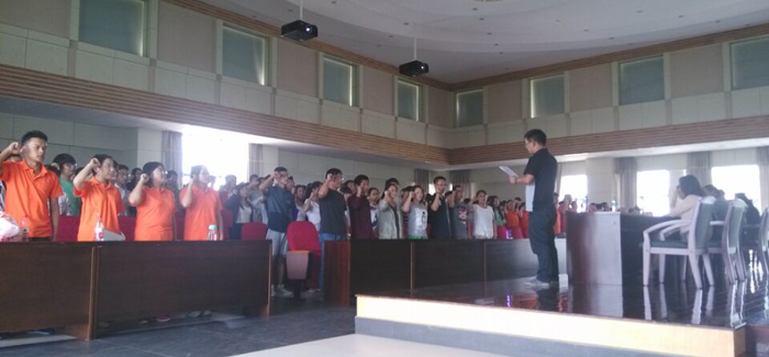 随后,孙勇代表学校为三下乡志愿者服务队授旗,樊传章带领全体志愿者进行了庄严的宣誓。最后,孙勇做了动员讲话,他在讲话中对今年的“三下乡”活动提出了具体的要求和希望,鼓励我校志愿者积极投身“三下乡”社会实践活动,在社会实践活动中收获真知、磨练意志、提升境界、砥砺品格。
