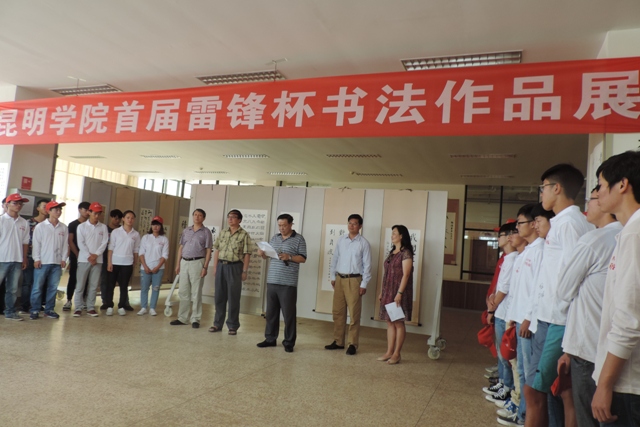 6月24日上午,昆明学院首届“雷锋杯”书法作品展开幕式在图书馆二楼展厅举行。学校党委副书记孙勇出席开幕式并讲话,党委宣传部副部长董学荣、学生工作部(处)部(处)长刘宜萍、城建学院党总支书记晁丽华、院长徐从发及城建学院“雷锋班”全体同学、部分书法爱好者参加了开幕式。开幕式由晁丽华主持。