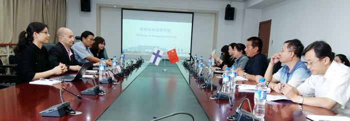 6月12日上午,在昆明市外侨办友好城市协会副会长汪浩先生和芮凌女士陪同下,芬兰于韦斯屈莱应用科技大学全球教育服务主任Timo Juntenen先生及项目协调人何翔女士访问我校,学校副校长李翔热情接待并与之会谈,国际交流合作处处长王文君及相关教师、医学院副院长杨兆宇、医学院党总支副书记罗隽燕及相关教师参加会谈。