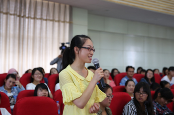 在发善心谈感悟互动环节中,师生踊跃发言,畅谈感悟。“管老师的支教经历,感人肺腑,你是我们同龄90后的榜样。你从江西来到云南贫困山区支教,在平凡的支教岗位上,用爱无私奉献着青春却从不言悔的精神给社会带来了正能量,也给这片多情的土地带来了温度,让我有了未来的方向,有了前进的动力。作为免费师范生的我将来还有什么理由不扎根家乡农村教育呢?”来自数学系2014级数学与运用数学专业师范二班的高天鸿感言。