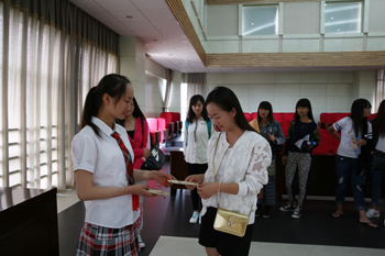 最后,讲堂进入送吉祥环节。工作人员将印有“志愿服务边疆教育 铸就无悔青春梦想”的吉祥书签一一送给每一位与会师生,希望大家常思己身,传承上善若水的品德,做中华民族传统美德的践行者和传播者,同心共筑中国梦。
