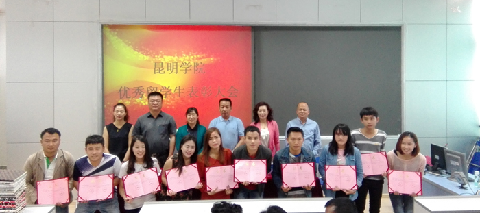 5月14日下午,我校召开优秀留学生、优秀留学生干部及优秀留学生班主任表彰大会,对在2014—2015学年中忠于职守、乐于奉献的留学生班主任,学习成绩优秀、学生工作表现突出的留学生及留学生干部给予表彰。副校长李翔、国际交流合作处处长王文君、经济学院院长博斌、信息技术学院院长王震江、人文学院副院长吴彦勤及教务处教师、留学生班主任和来自老挝、缅甸、泰国、斯里兰卡、尼泊尔、孟加拉国留学生参加了此次表彰大会。