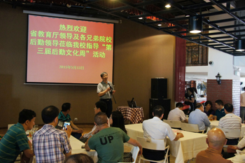 云南省教育厅后保处处长赵光武,玉溪师范学院副校长苏丽春,云南大学、云南师范大学、昆明理工大学等二十余所高校后勤领导,学校有关部门领导及师生参加了本次活动。后勤集团总经理冯坚介绍了到场的领导及嘉宾,副校长董建华代表学校致辞,对各兄弟院校代表莅临我校指导“后勤文化周”活动表示欢迎和感谢,教育厅后保处处长赵光武作了讲话。