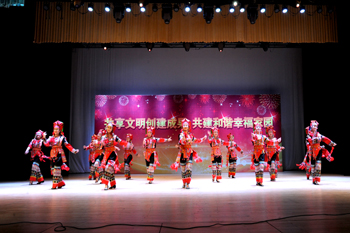 随后,一首旋律优美的《欢歌满家园》歌舞拉开了庆祝晚会序幕。由音乐学院、教师教育学院、校工会、校团委大学生艺术团、体育学院共同上演的《喀什葛尔女郎》、《回家》、《最美的风景是文明》、《致祖国》、《永不放弃》、《感谢朋友们》、《文明在哪里》、《共圆中国梦》、《炫彩拉丁》、《美丽中国》、《花腰花》、《举杯吧,朋友》等精彩节目,表达了全校师生庆祝荣获全国文明单位的喜悦之情和对昆明学院的美好祝福,最后一首《举杯吧,朋友》歌伴舞把晚会喜庆氛围推向了高潮。师生们精彩的歌舞表演,为大家献上了一份异彩纷呈、多姿多彩、韵味十足的视觉盛宴。