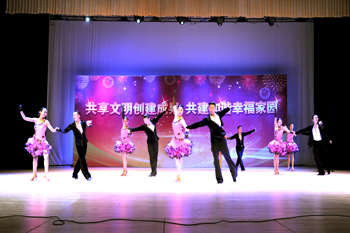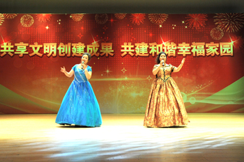 4月28日晚,“共享文明创建成果,共建和谐幸福家园”——庆祝我校荣获全国文明单位荣誉称号文艺晚会在学生会堂隆重举办。校长何华,党委副书记孙勇,副校长董建华,校长助理马银海及中层干部、各院系师生代表1300多人参加了庆祝晚会。