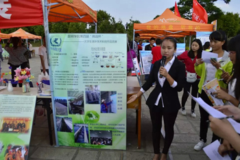 4月24日在聂耳广场,校团委组织各院系团总支举办了“昆明学院第四届青年学术科技节工作成果展”,第一批9家院系根据昆明学院第四届青年学术科技节启动以来,所开展的学术科技工作情况,在“挑战杯”学术科技作品竞赛中获奖作品情况,院系学科专业特色情况,环保和可持续利用情况等四部分内容,通过图文并茂的展板和创意新奇的实体物品进行展示,现场组织相关学生对各院系展示工作进行了评分。