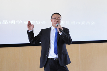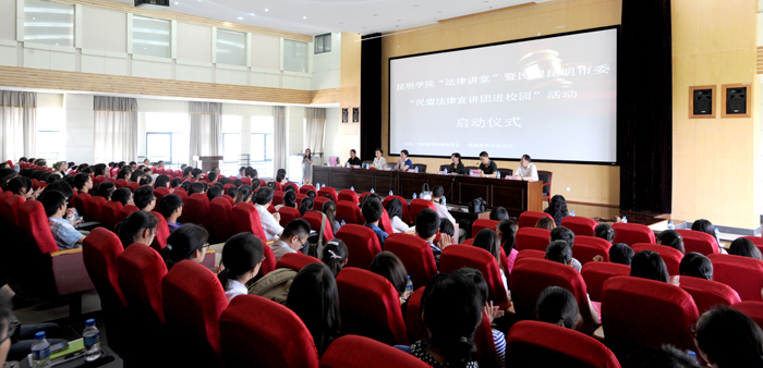 5月7日下午,昆明学院“法律讲堂”暨民盟昆明市委“民盟法律宣讲团进校园”活动启动仪式在我校惟行楼1501报告厅举行。昆明市人大常委会副主任、民盟昆明市委主委夏静,昆明学院党委委员、副校长熊晶,民盟市委专职副主委冯刚,五华区人大常委会副主任、民盟昆明市委副主委孙骥,昆明学院社会管理学院院长何杰,民盟市委各基层委的领导以及昆明学院18个院、系的师生代表共220人参加了本次启动仪式。启动仪式由党委统战部部长沈中灿主持。