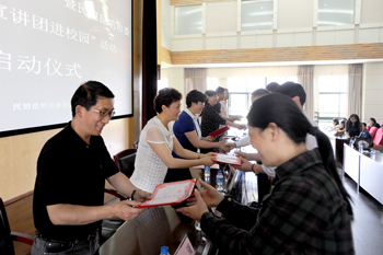 启动仪式上,参会的各位领导向民盟法律宣讲团的律师颁发了聘书。启动仪式后,进行了昆明学院“法律讲堂”第一讲,云南天外天律师事务所高级合伙人、副主任范培平律师做了题为“从劳动合同谈就业风险防范”的法律讲座,范培平列举了许多涉及劳动合同纠纷的案例,主要从劳动合同的签订履行,企业和劳动者的权利义务,大学生就业工作中的风险分析及防范,解除劳动合同的方式后果等方面进行了宣讲。为我校即将毕业的大学生提供了很好的法律咨询。