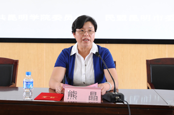 熊晶在启动仪式上致辞,她首先代表学校向一直关心、支持和帮助我校的民盟省委、市委领导以及市委统战部表示衷心的感谢。她指出建设中国特色社会主义法治体系,构建社会主义法治国家既是我国全面推进依法治国的总体目标,同时也是新时期国家发展的根本战略。推进法治校园建设,是高等学校落实依法治国战略决策的重要组成部分。学校党委高度重视,专门制定了昆明学院法治校园建设实施意见,以增强师生法治意识,弘扬法治精神,普及法律知识,提高师生法律素养为目标。开设昆明学院“法律讲堂”是推进我校精神文明和法治校园建设的重要途径和具体步骤。这次,我校与民盟昆明市委构建合作推进高校大学生法制教育的新模式,充分发挥民盟市委法律宣讲团和我校法律人才聚集的优势,必将进一步推动我校的法治校园建设,提高依法治校的能力和水平。