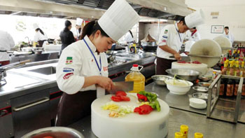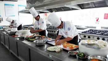 烹饪技能大赛竞赛分中餐热菜、中餐面点、中餐冷拼三个项目,均为个人赛;中餐热菜、中餐面点分别由两款菜品组成,参赛选手在规定时间内根据规程要求进行两款菜品的制作;中餐冷拼项目由一组冷拼组合构成,参赛选手在规定的时间内根据规程要求进行冷拼组合制作。