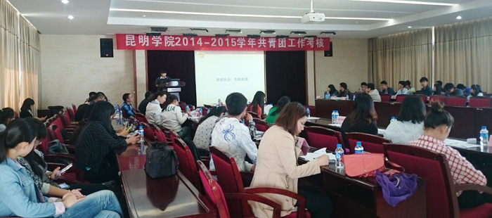 4月9日上午,由校团委组织的“昆明学院2014—2015学年共青团工作考核”在行政楼502会议室召开。校团委副书记魏妮娅和樊传章,团委办公室主任聂铭,团委组织部部长沈嘉,团委宣传部部长吴雨珂,各院系团总支书记以及团委各部门、团委全体学生干部、校学生会、学生社团联合会学生代表参加了此次考核。会议由魏妮娅主持。