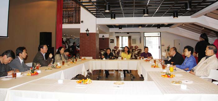陈世波向督导组介绍了昆明学院2004年以来在原昆明师范高等专科学校和原昆明大学合并的基础上整合昆明市优质教育资源组建全日制普通高等学校的发展历史。学校目前占地2000亩,规划建筑面积60多万平米,校外还建有500多亩实习实训基地;有19个院(系),43个本科专业,21个特色专科专业,是目前云南省学科门类最齐全的本科院校;有在职教职工1670人,博士和在读博士140多人,副高以上500余人,二级教授6人;面向全国20多个省(自治区、直辖市)招生,现有全日制本专科学生18000多人;学校坚持育人为本,突出教学中心地位,狠抓教学质量工程,深化改革,全面实施素质教育,努力提高教学质量和育人水平,2012年通过教育部本科教学工作合格评估;学校按照信念执著、品德优良、知识丰富、本领过硬的要求,以“思想品德优,理论基础实,专业能力强,综合素质高”为基本规格,着力为国家和地方经济社会发展培养“上手快、后劲足、能创新”的高素质应用型人才;学校坚持科研兴校,立足昆明、研究昆明、服务昆明,主动融入地方经济社会发展,以服务和贡献开辟自身发展的新空间;以高级别项目和应用研究为重点,基础研究和应用研究协同推进,着力提高科学研究的质量和水平,增设一批经济社会发展急需的应用型专业,如护理、农学、轨道交通、旅游、酒店、城建、特殊教育等相关专业,与相关企业合作开展“订单式”培养人才; “昆明科学发展研究院”、“昆明滇池(湖泊)污染防治合作研究中心”、“滇池泛亚合作战略研究院”、“昆明市物联网及泛在工程技术中心”等高层次研究平台和院(系)所研究机构,为市、县、乡村及相关领域做各种缜密的规划和课题,开展卓有成效的工作。学校滇池(湖泊)流域生态修复与生态文化研究平台获中央财政及滇池治理基金会2900万元的专项支持;紧扣滇池污染治理,成功承办 “国际水历史学会2012年国际区域会议”,有信心成为“九湖”研究会成员单位,并积极工作;2014年学校被命名为“全国文明单位”。我校下一步将把办学规模控制在2万人左右,紧紧围绕国家高等教育改革发展的核心任务和战略主题,上下一心,按照“超常规、跨越式、追赶型”发展思路,继续在人才素质、教育水平、科研质量、服务社会等方面努力工作。