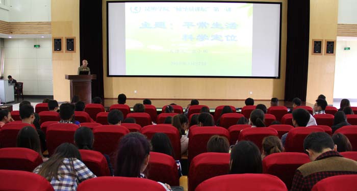 3月27日下午,昆明学院“辅导员讲坛”第一讲在惟行楼1501报告厅正式开讲,讲座主题为《平常生活 科学定位》,主讲人是我校人文学院辅导员张小彬老师,来自全校各院系的学生代表200余人到场聆听了讲座。张老师针对平时大学生日常生活中经常遇到或谈论较多的诸如陶行知的警言过时了吗? 嘴甜、脚勤、手快是吃亏吗?大学生要不要有自己的圈子等问题,结合一些经典案例和史实,用自己的专业知识和丰富的人生阅历与在座的大学生分享了自己的观点,讲座最后主讲人与现场同学作了互动交流。