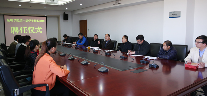 蒋校长强调,今天聘任的学生校长助理是昆明学院第一届学生校长助理,在昆明学院发展史中具有重要的意义,不仅体现了学校以学生为本、教书育人和务实担当精神,更体现了学校民主化管理及主人翁精神。你们是从18000余人学生中通过层层推荐、选拔出来的,不仅个人综合素质高,更重要的是具有广泛的代表性,希望学生校长助理们按照工作职责,积极、认真工作,在完成好自己的学业基础上,努力为学校做好参谋、为同学做好服务。