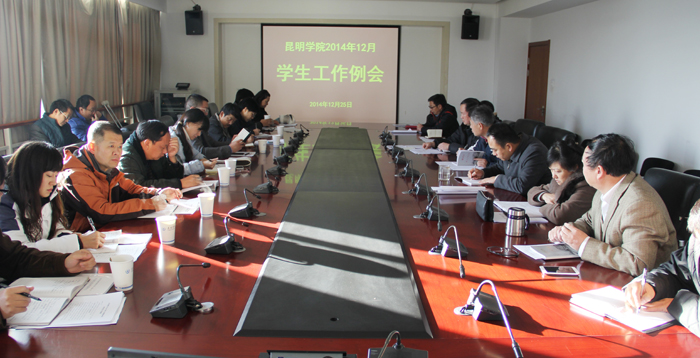 会上,各院系副书记分别汇报了近期学生工作的开展情况及工作中存在的问题和困难。教务处、招就处、计财处结合部门工作实际,对下一阶段考风考纪、就业指导服务、学生欠费收交等工作及解决院系学生工作中的困难作了相应安排。学生处对《关于做好2014-2015学年上学期期末考试考风考纪工作的通知》、《关于做好2015届毕业生毕业教育工作的通知》和《关于做好2015年元旦节及寒假放假期间学生安全教育及管理工作的通知》三个通知作了解读,并强调介于2015届毕业生下学期在外实习的实际情况,毕业生毕业教育要在本学期末启动,除按通知精神全面做好毕业生的相关教育外,重点要抓好安全教育。辅导员工作方面,一是对做好辅导员党员发展工作提出要求并做了有关工作的安排。二是对硕士及以上学历的辅导员从讲座、学生工作课题研究二个方面作了要求。讲座方面要求辅导员要贴近学生思想实际、生活实际、学习实际,结合辅导员自身的专业、研究方向、工作内容,围绕大学生的适应教育、学业引导、情感交流、生活关注、人文探索等主要内容,拟定并报送2015年“辅导员讲坛”系列讲座的主题,学生工作部处根据主题,分学校和院系二个层面安排昆明学院“辅导员讲坛”系列讲座。课题研究方面,要参考学生工作部(处)即将公布的2015年昆明学院学生工作课题选题指南,与其他学生工作干部一道积极申报2015年学校校级课题。