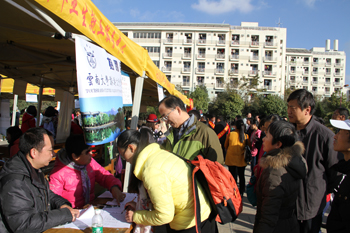 12月26日,云南省2015届综合类高校毕业生和毕业研究生双向选择洽谈会暨昆明学院校园大型招聘会在我校聂耳广场举办。本届招聘会由云南省教育厅主办,云南省大中专毕业生就业服务中心和昆明学院承办,云南省人才市场、昆明市人才服务中心、昆明经济技术开发区、中国移动通信集团云南有限公司昆明分公司协办。