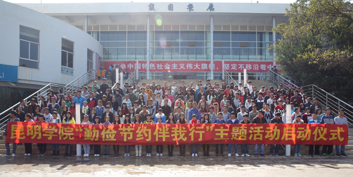 为弘扬中华民族传统美德、贯彻落实党中央、教育部关于建设节约型社会和节约型校园的具体要求,我校在全校范围内发起“勤俭节约伴我行”主题活动。12月10日中午,昆明学院“勤俭节约伴我行”主题教育活动启动仪式在我校馥园餐厅门口举行。参加本次活动的有学校纪委副书记、监审处处长陈开祥,党委宣传部主持工作副部长董学荣、团委主持工作副书记魏妮娅,监审处副处长林路,后勤集团党总支书记杨平、总经理冯坚及各教学院系学生党员代表、学生干部代表、廉诚学社全体同学共计200余人参加活动。活动由后勤集团办公室主任李杰主持。