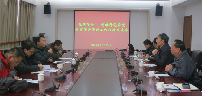 12月19日上午,楚雄师范学院副校长李勇率国有资产与信息化管理处处长李晓刚、副处长江枫及相关人员到我校进行考察交流,我校副校长董建华,资产与实验室管理处处长解永刚、副处长何松林及相关人员进行了接待,双方就高校国有资产管理的相关问题进行了交流探讨。