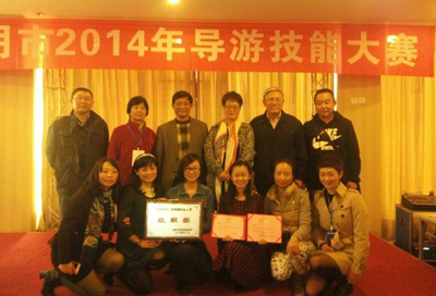 11月26日至28日,我校旅游学院学生参加了由昆明市旅游发展委员会主办的2014昆明市导游技能大赛。白雪同学三项竞技总分第八名,获三等奖,进入昆明市"十佳导游"行列,并被昆明市人力资源和社会保障局、昆明市旅游发展委员会联合授予“技术能手”称号,莫琪同学获优秀选手奖,昆明学院旅游学院因积极组队参与,团体成绩优异,获优秀组织奖。