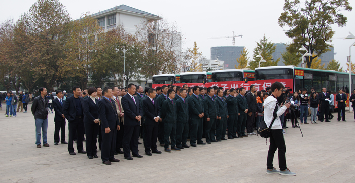 在开通仪式上,公交二公司第十九车队队长代表校园巴士服务司机对为师生提供优质服务进行了宣誓,严格按照《中华人民共和国道路交通安全法》、公交公司“双百、两率”、安全行车“三主动”及昆明学院相关规定等为广大师生提供安全、方便、快捷、绿色的公交服务。