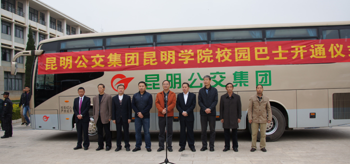 11月18日上午,昆明公交集团二公司昆明学院校园巴士开通仪式在学校举行。校长蒋永文、副校长董建华、后勤集团领导班子,昆明市交通运输局副局长袁俊,昆明公交集团有限责任公司总经理高永生、副总经理姜犹等领导,公交集团二公司员工、昆明学院学生代表参加了开通仪式。