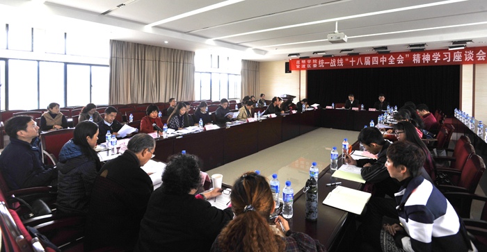 我校党委统战部部长沈中灿就中共十八届四中全会提出全面推进依法治国的时代背景、战略目标和重要意义进行了全面阐述。结合《中共中央关于全面推进依法治国若干重大问题的决定》,从坚持走中国特色社会主义法治道路,建设中国特色社会主义法治体系;完善以宪法为核心的中国特色社会主义法律体系,加强宪法实施;深入推进依法行政,加快建设法治政府;保证公正司法,提高司法公信力;增强全民法治观念,推进法治社会建设;加强法治工作队伍建设;加强和改进党对全面推进依法治国的领导7个方面对《决定》作了解读。对《决定》提出的重要改革措施进行了重点辅导,使参会人员进一步加深了对《决定》的理解。