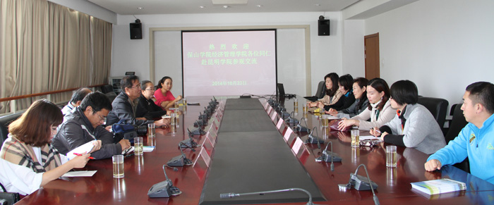 保山学院经济学院和我校经济学院、旅游学院在办公楼311会议室,就实验室建设、实验室管理、财务教学软件的购买、人才培养、教学科研等多方面进行了深入的座谈交流。
