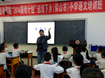 “送培下乡”项目以实践性教学为主,通过高校、送培地教师培训机构、中小学幼儿园三方合作,探索、形成在中小学、幼儿园教学一线发现问题、研究问题和解决现实问题的机制,采取名师示范、现场诊断、同课异构、交流研讨等方式进行。自9月21日起,昆明学院“送培下乡”项目先后在楚雄州幼儿园、武定县民族中学、德宏州芒市民族中学、芒市第一小学、保山市第一中学、保山市实验小学、昆钢幼儿教育中心、昆明市寻甸县幼儿园、红河州蒙自市第三中学、蒙自市第二小学举办。通过上课、观课、说课、议课、辩课、评课、专题研讨等一整套有机结合的环节,努力创设民主开放的培训氛围,在为参训学员提供可借鉴的、先进的教学程序、教学策略和教学方法的同时,让学员在集体研讨中积极思考,充分表达,在思维的碰撞中加深对专题和课例的理解与认识,使学员能够真正学有所获、学有所成。