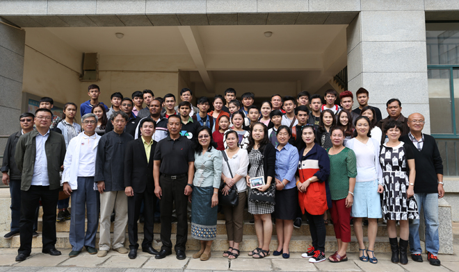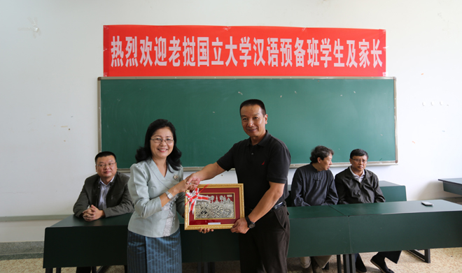 李翔副校长在会上介绍了昆明市和昆明学院的基本情况,勉励留学生刻苦学习汉语,预祝大家顺利通过HSK考试并进入专业学习。Keomanivong PHIMMASENE女士也代表老挝国立大学对老挝同学提出殷切期望,对各国同学提出良好祝愿。会上,中老双方老师在亲切友好的氛围中互赠了礼物。