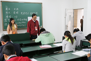 由中国动物疫病控制中心主办,云南省考区办和昆明学院承办的2014年全国执业兽医资格考试于10月12日在我校博雅楼举行。云南省农业厅副厅长寸强、昆明学院校长蒋永文、省考区办主任张兴谷、省市动物疫控中心、市农业局、我校教务处、农学院领导全程巡视了考试情况。