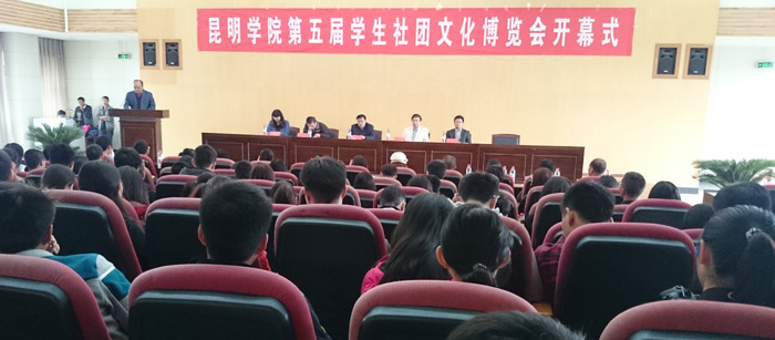 10月14日,由校团委主办,学生社团联合会承办的昆明学院第五届学生社团文化博览会在惟行楼1501报告厅拉开帷幕。学校党委副书记孙勇,学生处处长刘宜萍,党委宣传部副部长王宁,团委副书记魏妮娅、樊传章,保卫处、教务处、校团委老师,各院系团总支书记,各社团代表和云南大学等社团联合会代表参加了开幕式 。