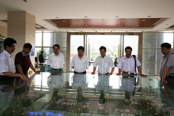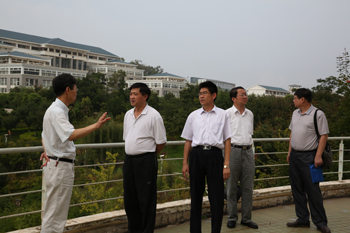 在刘副校长及郑助理的陪同下,唐副校长一行饶有兴趣地参观了校园建设规划沙盘、图书馆及校园环境。刘副校长边参观边向唐副校长介绍我校校园建设规划,图书馆功能及配套设施建设等情况。