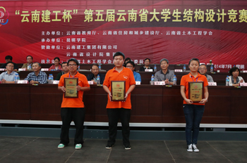 来自云南省具有土木工程专业的8所高校32支参赛队,按照赛题及组委会要求,经过3天紧张、认真的计算设计、模型制作、加载测试,专业评委严格按照评分标准对参赛作品计算书及设计图、结构选型与制作质量、选手陈述与答辩现场表现、加载表现等方面进行打分评定。最终,昆明学院智行队以94.60的总分夺得本届大学生结构设计竞赛唯一一个特等奖,并获准代表云南省参加由教育部、住建部、中国土木工程学会联合举办的全国大学生结构设计竞赛,该项竞赛是教育部确定的全国九大大学生学科竞赛之一。昆明学院小苹果队、完美2+1队、水利结义队分别以90.26分、85.38分、85.37分将所设三个一等将全部揽入怀中,启航之队荣获二等奖。昆明学院5支参赛队成绩突出,充分展示我校坚持以学生为本,以“思想品德优,理论基础实,专业能力强,综合素质高”为人才培养基本规格,不断提高教学质量和育人水平,着力培养地方经济社会发展需要的大批“上手快、后劲足、能创新”的高素质应用型人才。